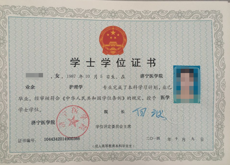 成人高考学位证书样本应届本科毕业生由学生本人于当年1月、7月份提出申请,各院系(函授站、校外学习中心)填写学位申请表,交远程与继续教育学院进行资格审查,对资格审查通过者,由远程与继续教育学院提出建议授予学位的名单,分别于当年3月中旬、8月底前将审定名单提交教务处,教务处复核后报学校学位评定委员会审批。对审批通过者颁发高等教育学士学位证书。